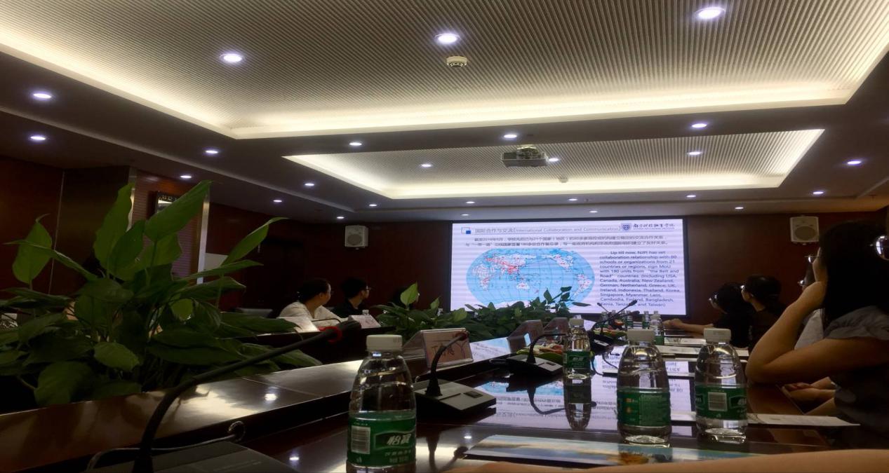师生到达南科院后受到了国教院领导、老师们的热情接待。来到会议室就座后,先由南京科技职业学院国教院的丛倩院长给我们介绍了他们学校的基本情况。南京科技职业学院是一所特色明、水平高、创新强,产学研用紧密结合的国内高水平开放型高职院校,并且注重国际合作与交流,目前已与21个国家(地区)的80余所高校或机构建立稳定的合作关系,因此有越来越多的外国留学生来此学习交流。目前南科院的在读留学生规模达500人以上。