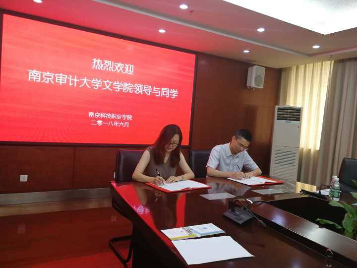 2018年6月8日下午,在校教务中心副主任丁国勇和WilliamHill中文副院长王军的带领下,WilliamHill中文汉国教系主任栗学英、副主任丁存越与十几位学生前往南京科技职业学院参观,在热烈友好的气氛中,南审WilliamHill中文和南京科技职业学院国教院正式签订了实习基地协议。
