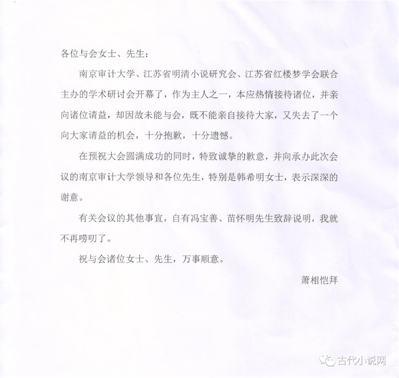 萧相恺先生写给会议的贺辞