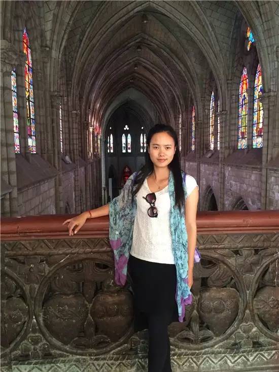 (本文作者严月红在厄瓜多尔首都基多的双子教堂里)