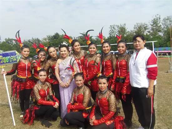 (Sisaket府教师运动会,年轻老师人人参与学校的教师舞蹈队参加比赛)