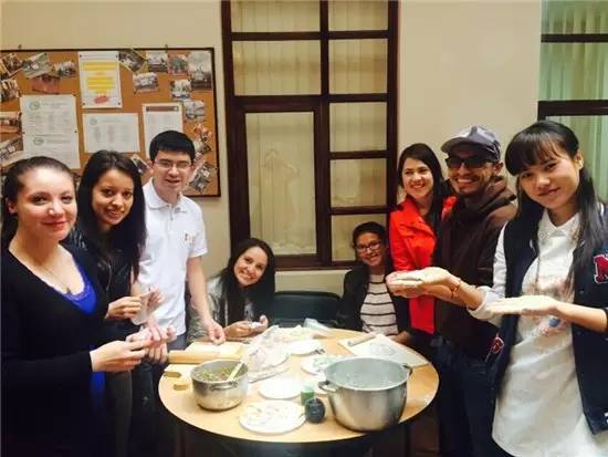 (和学生一起包五色饺子)