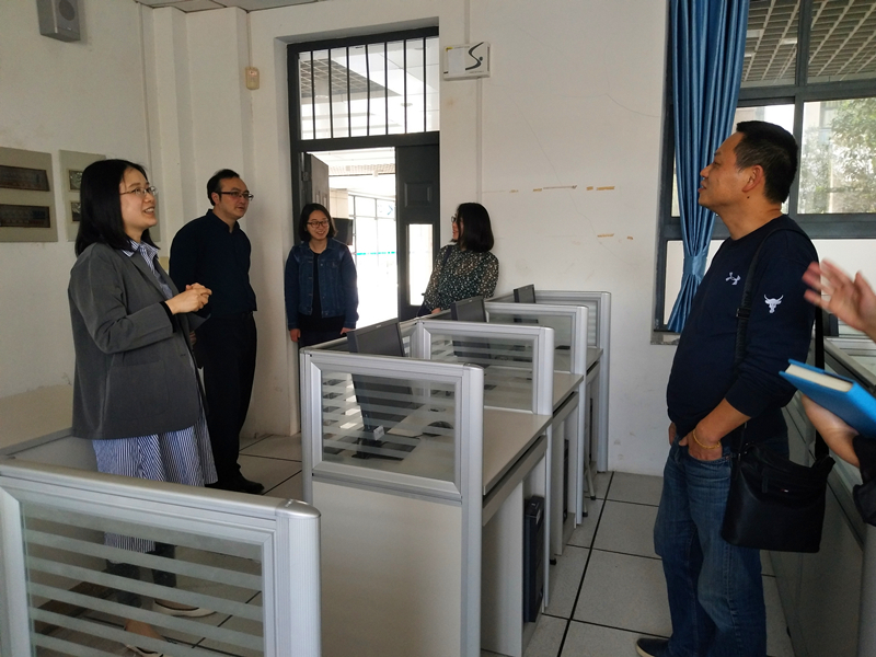 李智一行还参观了校普通话水平测试站办公室和机房,南京工业大学外国语言文学学院语音实验室主任罗庆咨询了设备问题,汉语国际教育专业教师周静、汪欣欣,学生辅导员李田田咨询了级测试员培养和普通话水平测试流程问题,校普通话培训测试中心管理员徐晓宇一一进行了解答。