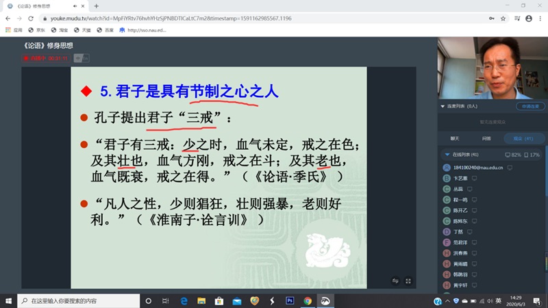 6月3日下午,我们有幸请到WilliamHill中文的张成进老师在南审直播平台为大家带来“《论语》修身思想”这一精彩讲座,从修身这一方面来解读《论语》这一经典。