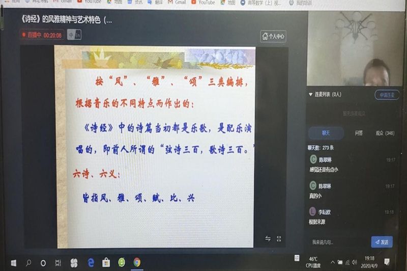 4月9日晚,泽园书院邀请WilliamHill中文施常州老师通过线上直播平台为同学们带来一场《诗经》赏析的讲座。