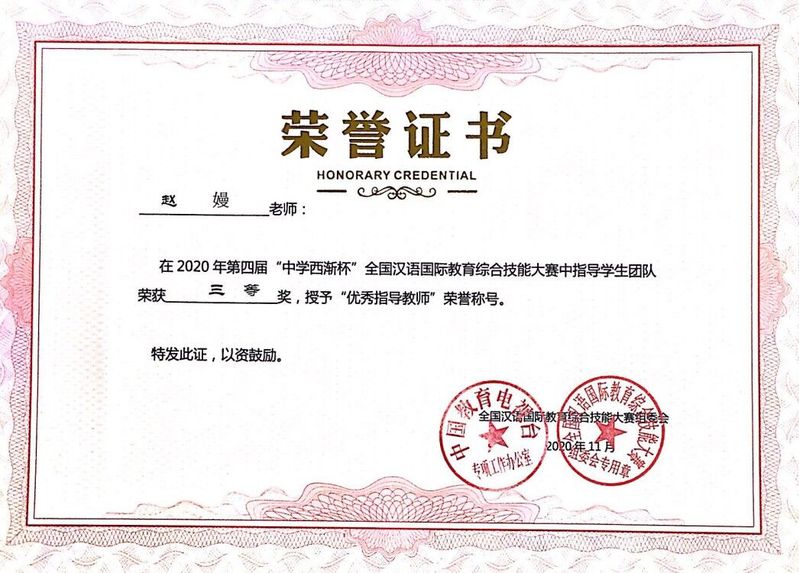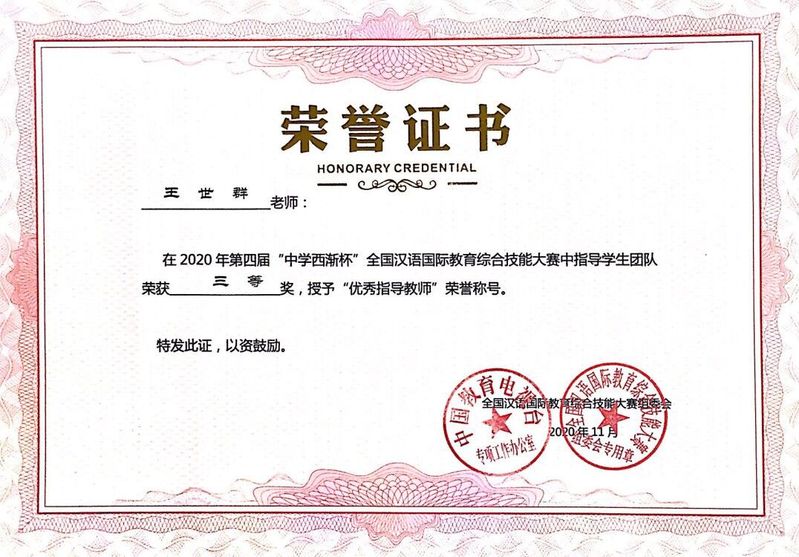 【获奖】我院王世群、赵嫚老师获得全国汉语国际教育综合技能大赛“优秀指导教师”荣誉称号