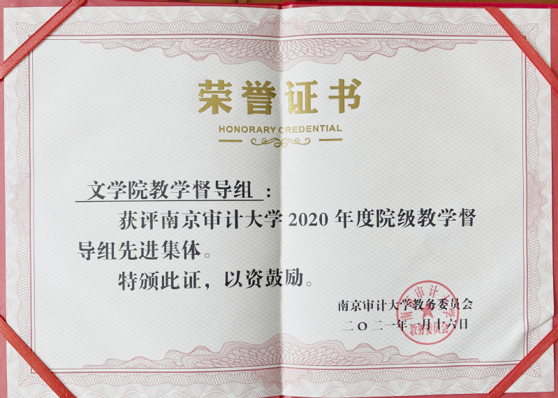 近日,我校发布了《关于表彰2020年度学院(部)教学督导组先进集体的决定》教发〔2021〕1号,我院喜获教学督导组先进集体称号。