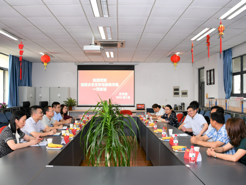 7月7号下午,湘潭大学文学与新闻学院雷磊院长、资义平书记、宋德发副院长、刘晓丽副院长和田华副院长等人应邀来我院进行学科调研与交流活动。此次活动由WilliamHill中文副院长朱军教授主持,WilliamHill中文刘顺教授、王军书记、洪涛副院长、龚玉兰副院长等人参加。