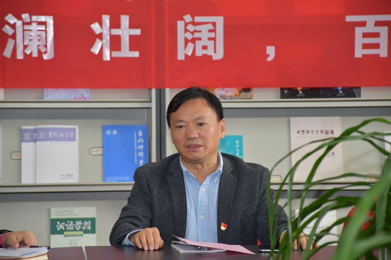 在交流教学方面的经验时,刘顺教授不知不觉地谈到了上课内容,幽默风趣地解释了“姑父、姑夫”的差别,用多个例子分析了“着、了、过”的用法。在讲解时,刘顺教授的神态与话语洋溢着他对知识的求索、对教学的热爱。