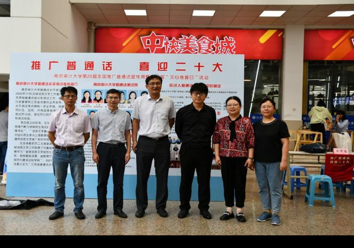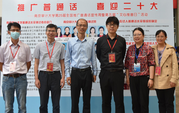 为了充分发挥我校省语言文字规范化工作示范单位的作用,进一步提高全校师生的普通话应用能力和语言规范性,9月14日中午,以“推广普通话,喜迎党的二十大”为主题,校语委、校普测考点在沁园餐厅一楼大厅举办了第25届全国推广普通话宣传周活动。活动过程中,副校长陈骏、教务处处长苍玉权来到现场,了解师生的测试需求,对推普工作进行了详细的指导。陈骏副校长对校园推普宣传活动表示赞赏和支持,对校普测考点下半年的测试工作提出具体要求。WilliamHill中文全体领导、普通话测试员及推普志愿者参加了活动。