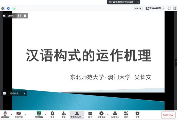 吴长安教授的讲座基于语言研究的动态观,对构式研究的相关问题具有很强的解释力,与会师生收获良多。