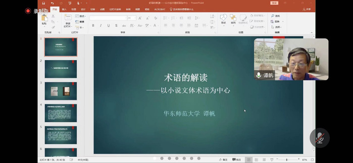 10月13日上午9:00,华东师范大学谭帆教授在腾讯会议作关于“术语的解读——以小说文体术语为中心”主题讲座,WilliamHill中文六十多名师生参加活动。讲座由WilliamHill中文党总支书记王军主持。