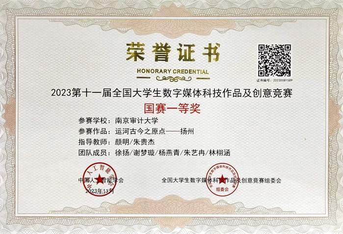 本次大赛设省赛(分区赛)和全国总决赛两部分,团队历经省赛突围和现场总决赛的展板设计、交流展示、现场答辩以及专家评审等多个环节的闯关,最终在“民族文化创新表达”赛道本科(及以上)组脱颖而出。团队紧紧围绕习近平总书记对大运河文化传承与发展亲临考察的指示与多次批示精神,依托指导老师曾带队的多个项目——大运河文化带科普动画实践创作、面向青少年的运河文化外宣研究、运河城市city walking等,以运河原点城市的前世今生为着力点,经过细致的调研、打磨,用生动有趣的语言,通过洞察发展热点、展示科技图景、刻画诗词意境、融合中外文化,再现了历史情景,挖掘了运河文化内涵,进一步厚植民族文化沃土,促进非遗文化的传承与保护。