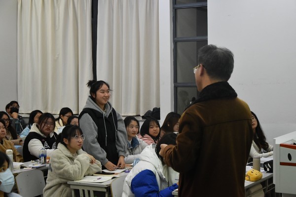 校教学督导王书贞:课程内容了然于心,游刃有余,收放自如;大量事例,印证丰富,语言轻松幽默,富于肢体语言,知识面宽泛;互动和思政都很自然而然,设问为主,时间停顿刚好。教师问与学生答,配合得刚刚好。