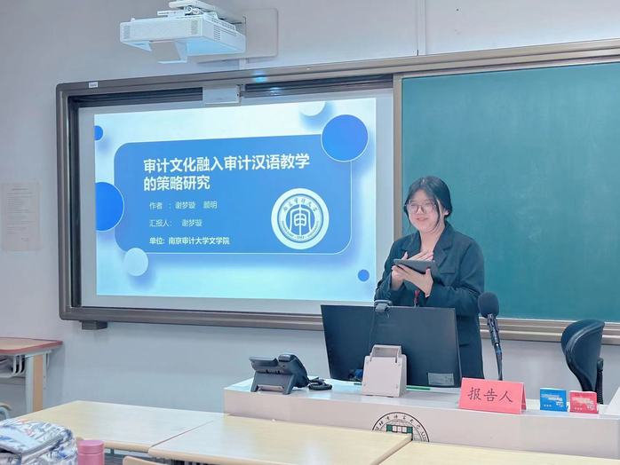 11月25日,第三届专门用途中文教育学术研讨会在北京语言大学召开,该会议由北京语言大学国际汉语教学研究基地/国际中文教育研究院、世界汉语教学学会专门用途中文教育专业委员会主办,旨在促进国际中文教育与相关专业、职业教育融合发展。谢梦璇同学参加会议并汇报论文《审计文化融入专门用途汉语教学的策略研究》,探讨审计专业留学生的文化教学问题。