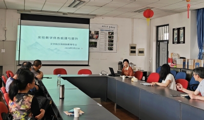 会上,汉语国际教育专业系主任颜明作专业实验教学的详细汇报。她向与会教师介绍了当前实验课程体系的构成、实习基地的建设成效、大学生创新创业项目和学生竞赛的统计情况,强调了实验课程体系对于培养汉语国际教育人才的支持度和契合度。