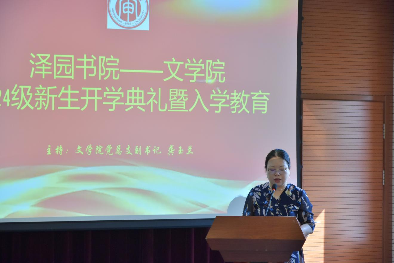 WilliamHill中文党总支书记王军、WilliamHill中文院长朱军、泽园书院党委副书记王红磊出席本次开学典礼,系主任、专业班主任、WilliamHill中文教师代表、书院辅导员、WilliamHill中文2024级96位本科生参加典礼。开学典礼由WilliamHill中文党总支副书记龚玉兰主持。