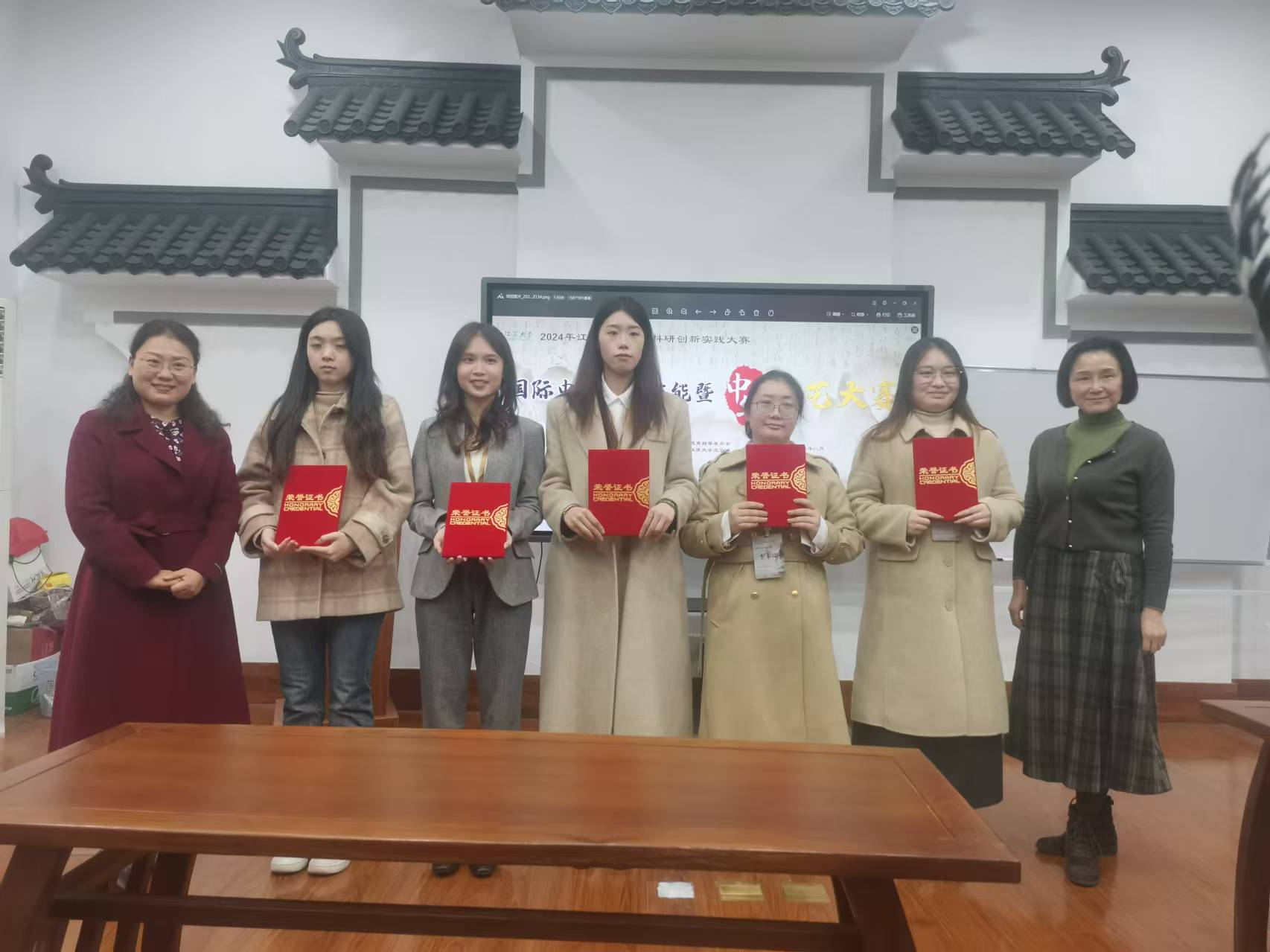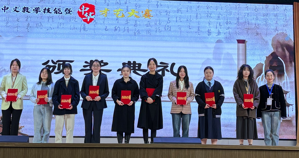 其中,孙玉敏同学获得论文比赛二等奖;邸泽文同学获得论文比赛三等奖;黄栩莹同学、钟兴同学分别获得教学技能比赛三等奖;黄栩莹同学、钟兴同学、陈丹同学表演的《竹风墨舞》获中华才艺比赛三等奖。参赛同学表示,大赛为他们提供了宝贵的实践平台,使她们能在真实竞赛中检验并提升自我,拓宽学术视野,对国际中文教育和中华文化传播有了更深理解。这次经历为她们的学术研究和职业发展注入了新动力。