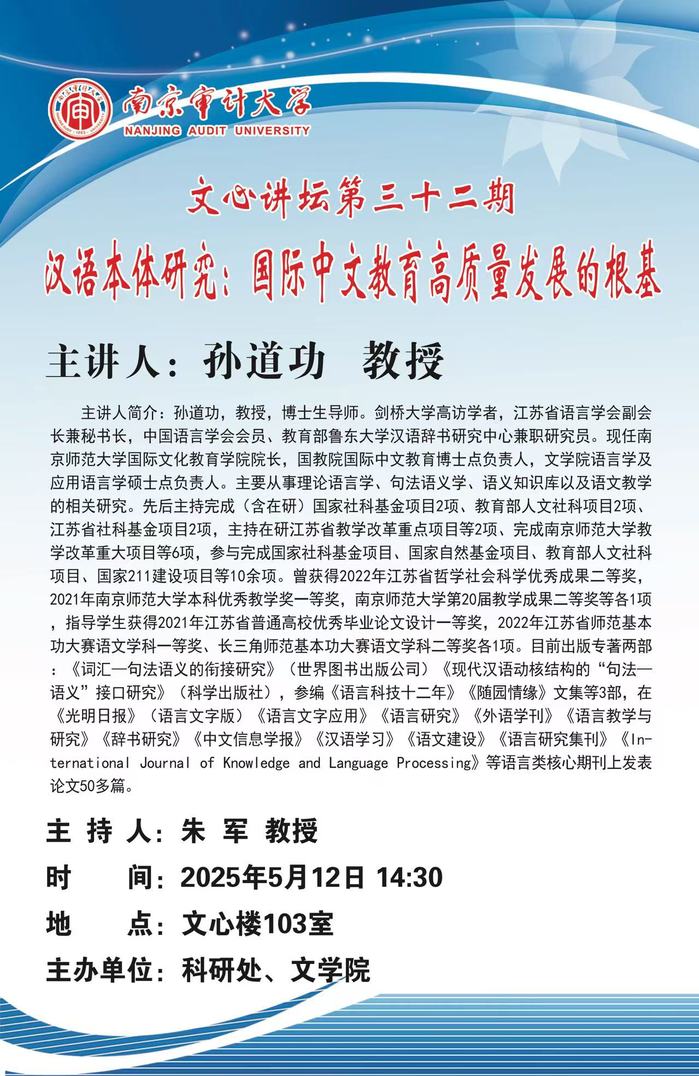 文心讲坛第32期--孙道功教授